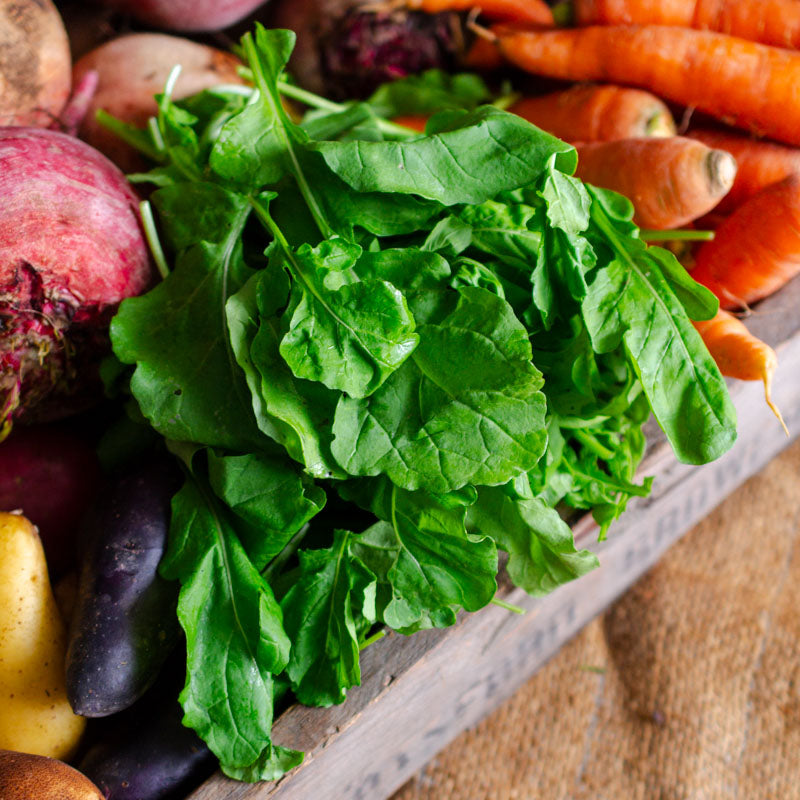 The distinct, mildly spicy taste of arugula is perfect for topping pizza and pasta, or included in fall salads. Grown in nutrient-rich soil on a regenerative farm.